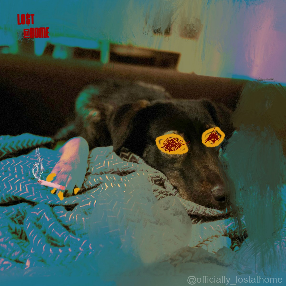 Since then she has been part of Friday Resets and the Lost@Home family. The cover for the new playlist was made the night when the idea for Lost@Home came to me. I always find inspiration from her: She is still cautious and will snap if you don’t come with the right energy. But she is not scared of the world anymore. She is not hiding under the table anymore. She stays on the couch with me, and she is very sweet and loving in her own way – since she learned that trusting is not always dangerous.